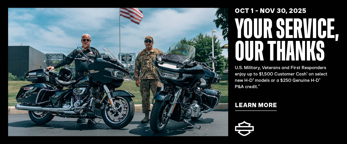 You submit a standard online finance application with your employer listed and then discuss the options available for active military personnel with Riding High Harley-Davidson®.